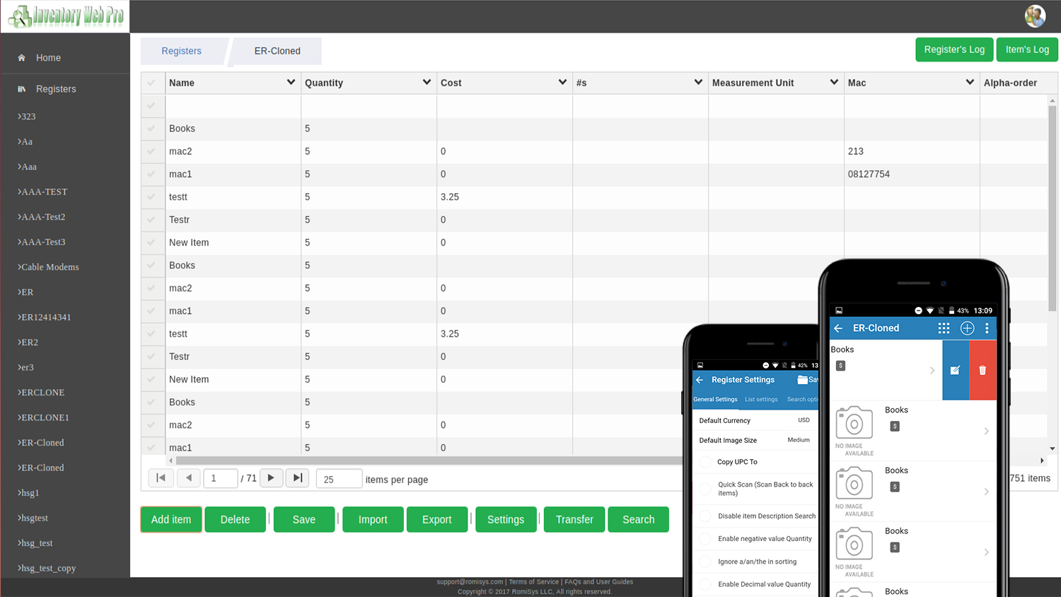 MTech Solutions opted for a web application and Android counterpart as a cost-effective and flexible solution. Each business account begins with one login and account type, tailored to the size of the business. The admin of this account can add additional users to help manage inventory and can control their permissions inside of the software. Upon logging in, users can create separate registers for separate inventory locations. Inventory is easily managed inside the register, and inventory settings are fully customizable. Users can create custom inventory categories and fields for item information as well as alarms/reminders, scanning options, GPS tracking, and reorder triggers.